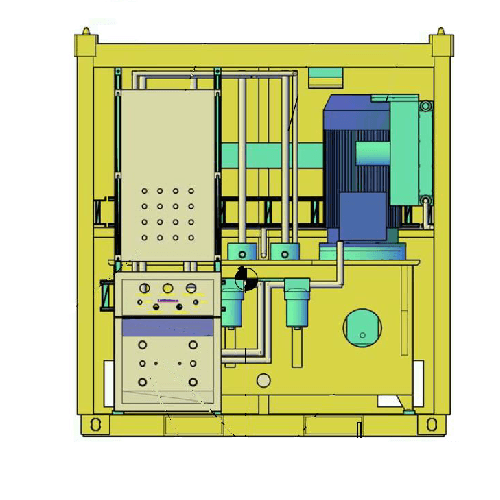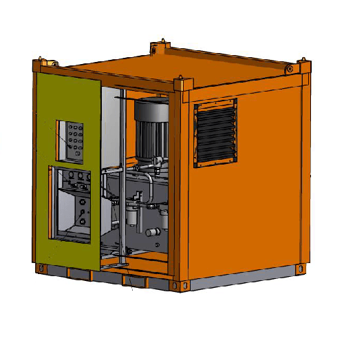 2 x 55 kW HPU build in 2.7-1 container. Variable single pump with PC or LS mode. Up to 350 bar.